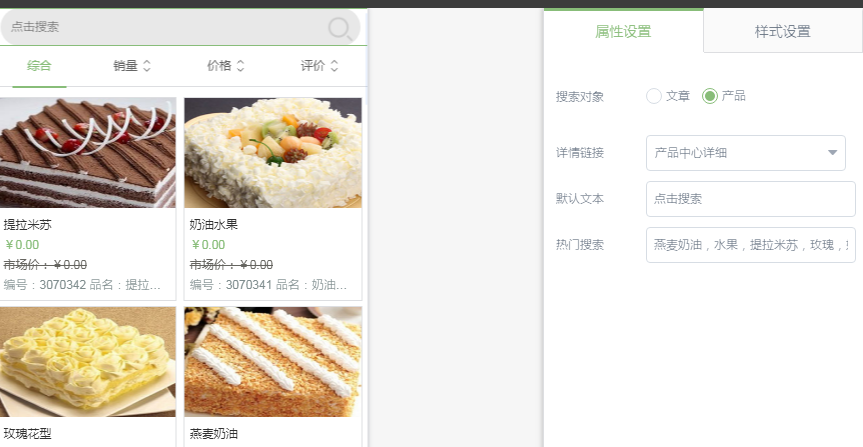 搜索对象:可以设置该搜索插件是搜索文章还是搜索产品,并且搜索结果页面是系统内置的