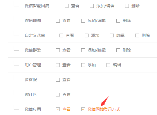 微信管理---微信应用这块,增加了微信网站登录方式的权限