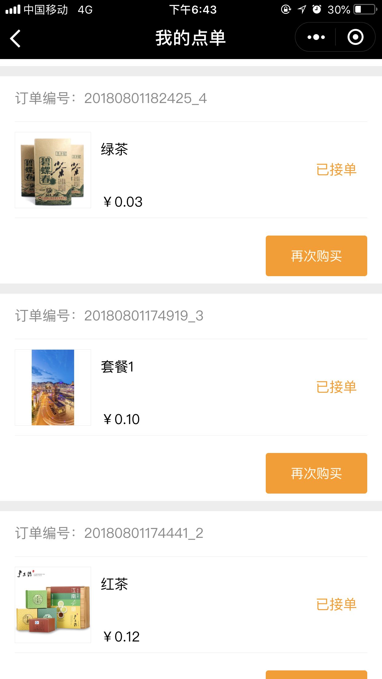 5.在“会员中心”中—“手机点单”中可以看到所有的订单详情,如图所示: