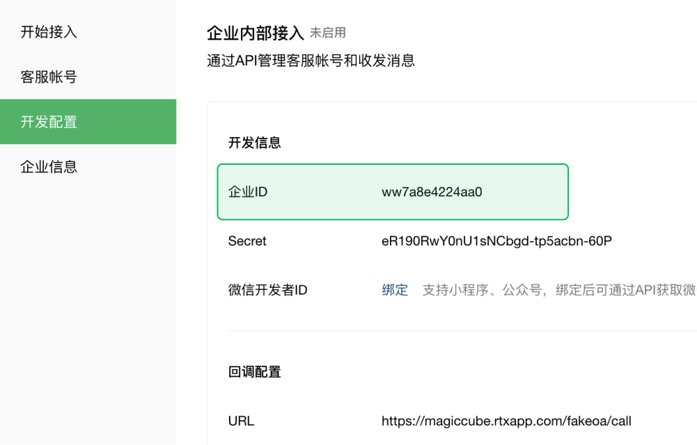 在小程序管理后台的“功能-客服-微信客服“处,填写对应的企业ID,完成绑定。