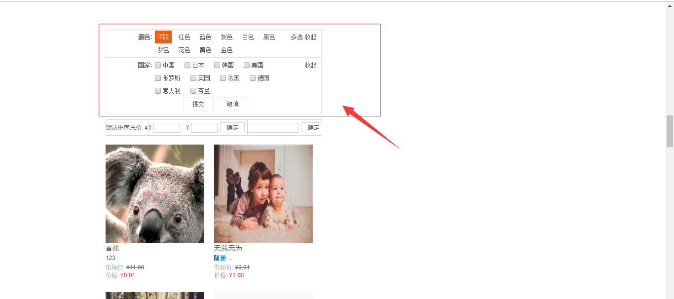 如果需要点击分类出现对应的属性(需要通过超链接  选择产品列表页)如下图